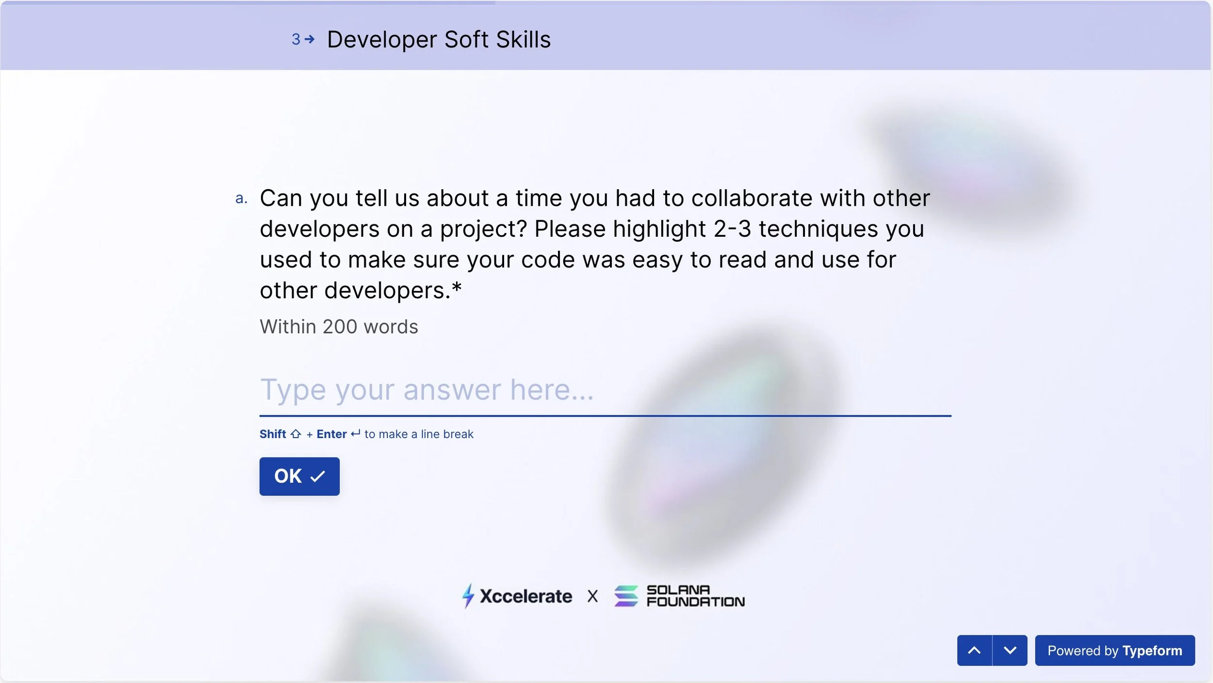 Xccelerate, a pioneering train-to-hire platform, had a goal of training 100 of the most high-potential candidates for Solana designers and engineers on behalf of the Solana Foundation from amongst the many applications they received for their selective “train-to-hire” course. The Xccelerate team needed a solution to streamline their candidate selection process for this selective course while maintaining their high quality standards, and brought in Axiom to develop an innovative AI-powered online assessment tool.
